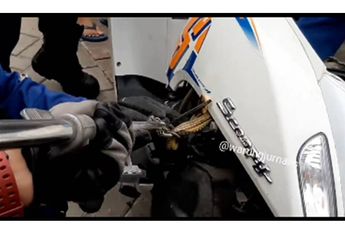 4 Tahun yang lalu - Viral di media sosial seekor ular masuk ke bagian mesin motor Honda Scoopy, pemilik motor langsung menghubungi petugas damkar.
