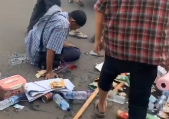 5 Tahun yang lalu - Penjual minuman yang mengalami kecelakaan juga terlihat terduduk lemas di dekat dagangannya yang tumpah.