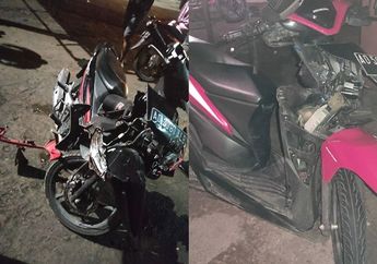4 Tahun yang lalu - Honda Vario langsung ringsek parah di bagian depan setelah ditabrak Honda Supra X 125, korban yang ditabrak luka parah.