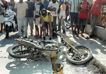 5 Tahun yang lalu - Pemilik motor Yoseph Herbon sesudah kejadian hanya bisa melihat kondisi kendaraan tinggal rangka saja.