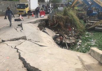 5 Tahun yang lalu - Jalan Raya Inspeksi Waduk Pluit, Penjaringan, Jakarta Utara amblas akibat tanah longsor membuat pemotor khawatir tertimpa musibah saat melintas.
