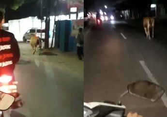 5 Tahun yang lalu - Waduh, seekor sapi lepas dan lari ke tengah jalan bikin pemotor geger, motor dan mobil langsung minggir.