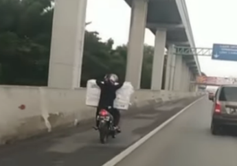 5 Tahun yang lalu - Bekasi digegerkan dengan video pemotor yang ngebut sambil mengangkut barang memasuki jalan tol Jakarta-Cikampek, pada Minggu (25/10/2020) sore.