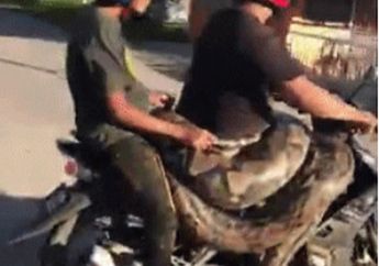 4 Tahun yang lalu - Merinding pria ini naik motor sambil dililit ular piton. Mengutip dari World of Buzz, terlihat seorang pria berboncengan diatas motor.